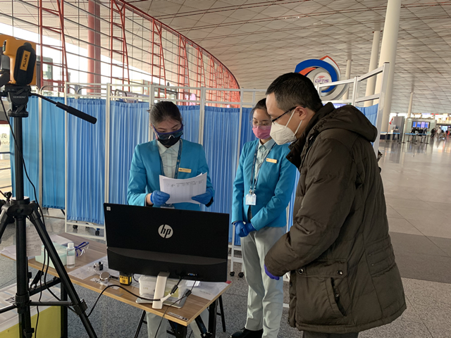 早上八點多,杜生慧開始了當天的疫情防控監督工作。他心里惦記著前天有旅客在微博上反映的進港測溫區人流聚集問題,便先來到T1行李廳。看到新加裝的測溫門、地上醒目的間隔地標和整齊的蛇形拉帶,他輕舒了一口氣,想到這會兒不是旅客進港高峰,決定下午再來查看。按照計劃,他今天要監督檢查T1、T2航站樓的旅客疫情防控措施和員工疫情防控落實情況。航站樓是旅客進出港的必經之處,疫情防控任務十分艱巨。對疫情防控負有監督職責的杜生慧,同樣任重道遠。