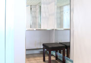 在行李提取大廳設置有六處更衣室,鏡子、桌臺、座椅、掛鉤,一應俱全,方便旅客更換衣物。
