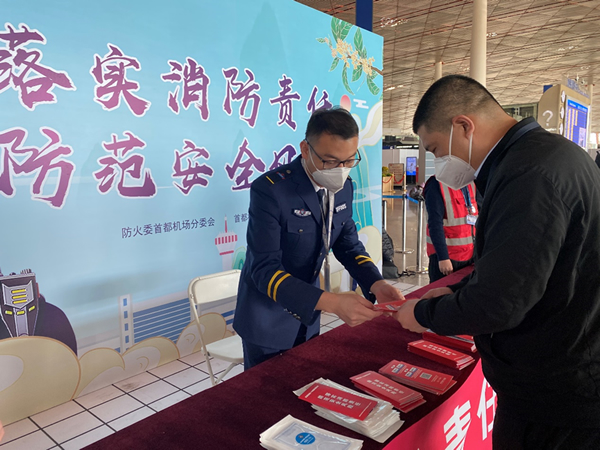 為全面提升廣大旅客和員工的消防安全意識,嚴控消防風險,北京機場地區防火安全委員會首都機場分委員會和首都機場股份公司以“落實消防責任,防范安全風險”為主題,共同組織開展為期一個月的消防安全宣傳系列活動。