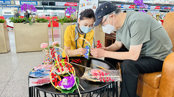 今年中秋喜逢國慶,為增添節日氛圍,弘揚中華傳統文化,首都機場在2號航站樓、3號航站樓愛心服務專區設置了中秋節主題活動,旅客可現場參與花燈、掛飾、琉璃花瓶等工藝品的制作,把來自首都機場的節日祝福帶回家。