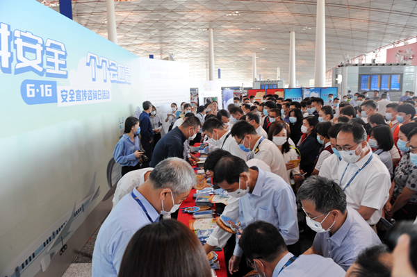 今年6月是第22個全國“安全生產月”,主題為“人人講安全、個個會應急”。6月16日,全國“安全宣傳咨詢日”當天,首都機場為進一步增強公眾安全意識,營造濃厚的安全氛圍,圍繞“安全生產月”主題,在航站樓、飛行區組織開展了“安全宣傳咨詢日”活動,集中宣傳安全生產方針政策、法律法規、民航安全規章和安全生產知識,回答群眾關心的民用航空安全問題。