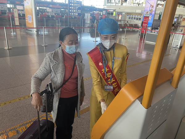 現(xiàn)在,首都機場暖陽團隊在接到老年旅客“愛心陪伴服務”的預定信息后,會主動聯(lián)系旅客確認航班信息、接駁地點、服務需求等內(nèi)容,并根據(jù)旅客始發(fā)地或目的地信息,結合現(xiàn)場資源,詢問旅客是否需要方言服務,從而按需求在值機、安檢、登機等環(huán)節(jié)用“鄉(xiāng)音”進行注意事項及相關政策的提示。使用“鄉(xiāng)音”溝通不僅方便老年旅客更加快速理解服務及提示內(nèi)容,還能讓老年旅客在出行過程中更有親切感。