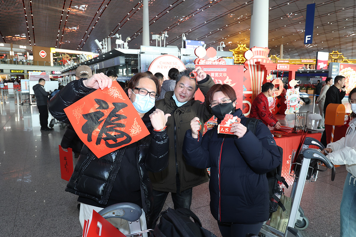 本次活動(dòng)設(shè)置了豐富的中華傳統(tǒng)非遺文化現(xiàn)場(chǎng)互動(dòng)體驗(yàn)和線上抽獎(jiǎng)環(huán)節(jié)。同時(shí),為持續(xù)做好一體化服務(wù)平臺(tái)線下營(yíng)銷宣傳,提升旅客對(duì)服務(wù)品牌的認(rèn)知度,在現(xiàn)場(chǎng)活動(dòng)中,首都機(jī)場(chǎng)服務(wù)品牌IP“都都”與旅客開展互動(dòng),通過現(xiàn)場(chǎng)掃碼參加有獎(jiǎng)游戲的形式,向廣大旅客發(fā)放周邊文創(chuàng)產(chǎn)品,在熱鬧溫馨的氣氛中歡歡喜喜過新年。